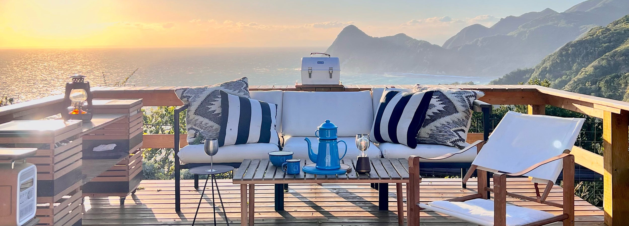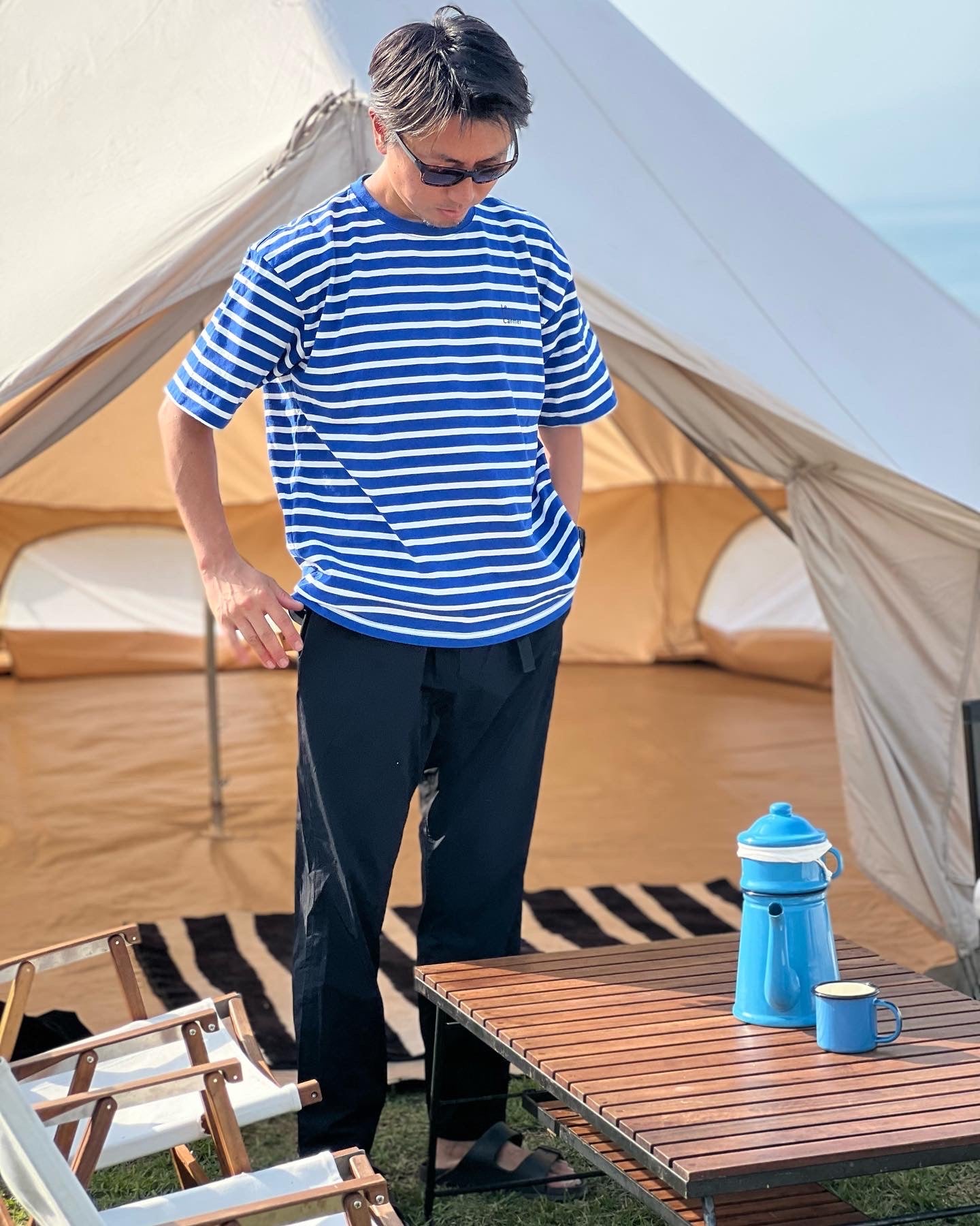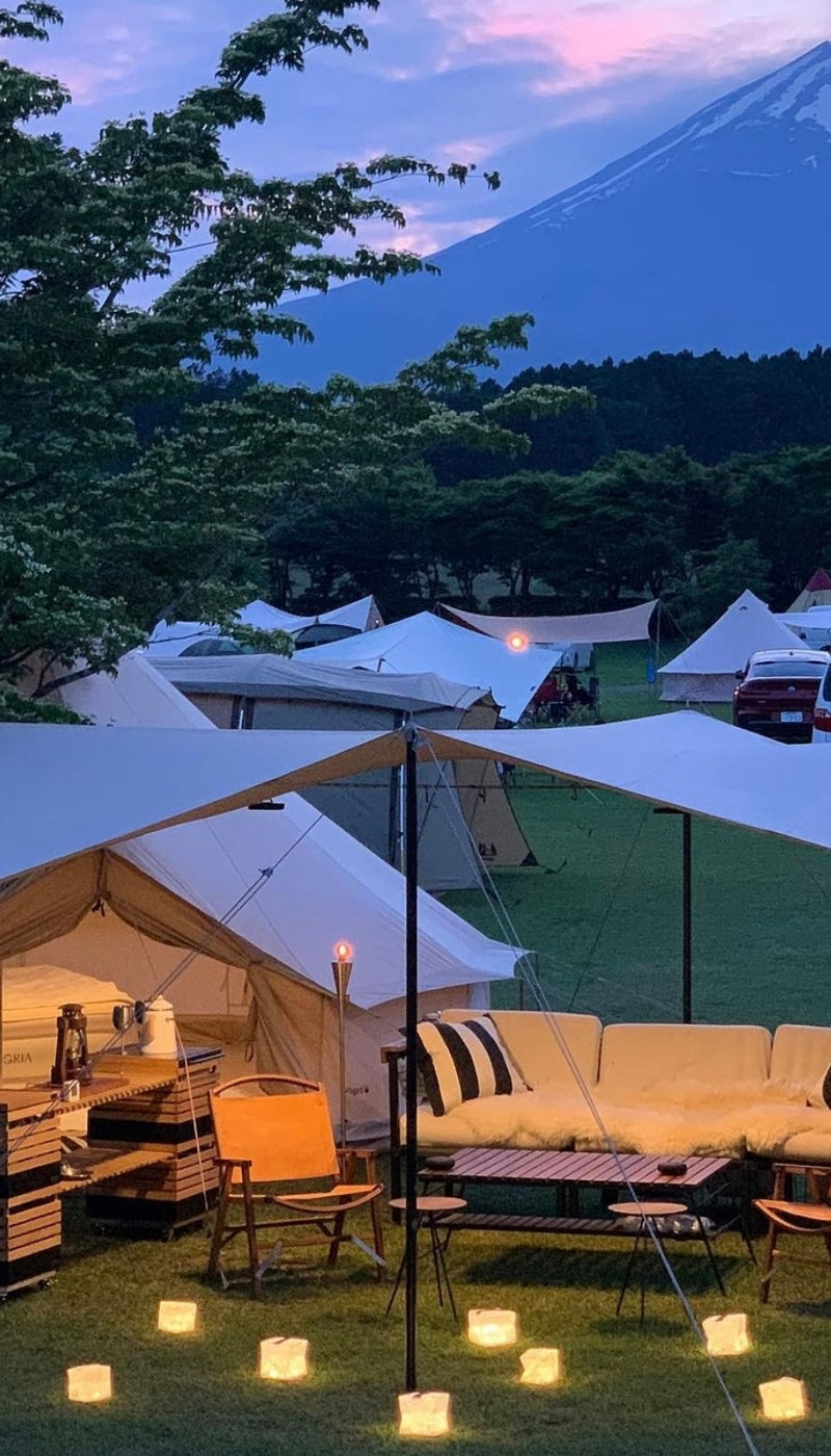 My camping motto is “camp as if you were relaxing in your living room”. Every weekend, I load my camping gear and furniture into my car and travel around Japan in search of scenic views. Every season, I look for a spot with great view, and when I find it, I pitch my glamping tent and arrange my favorite furniture the way it fits perfectly in the surroundings. This is how the perfect home created away from my home is made.