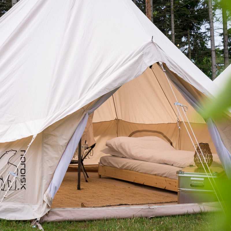 Nordisk tents with real beds and clean design gave guests the comfort they