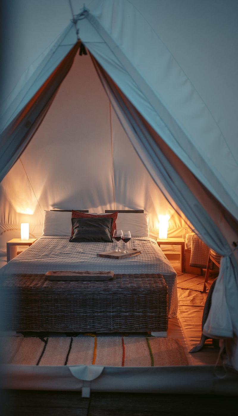 All Cotton tents are laid out so as to guarantee privacy but are done so within a communal space which, we hope, will inspire you to feel part of the village. Cooking in the shared kitchen area is a great way to do this.