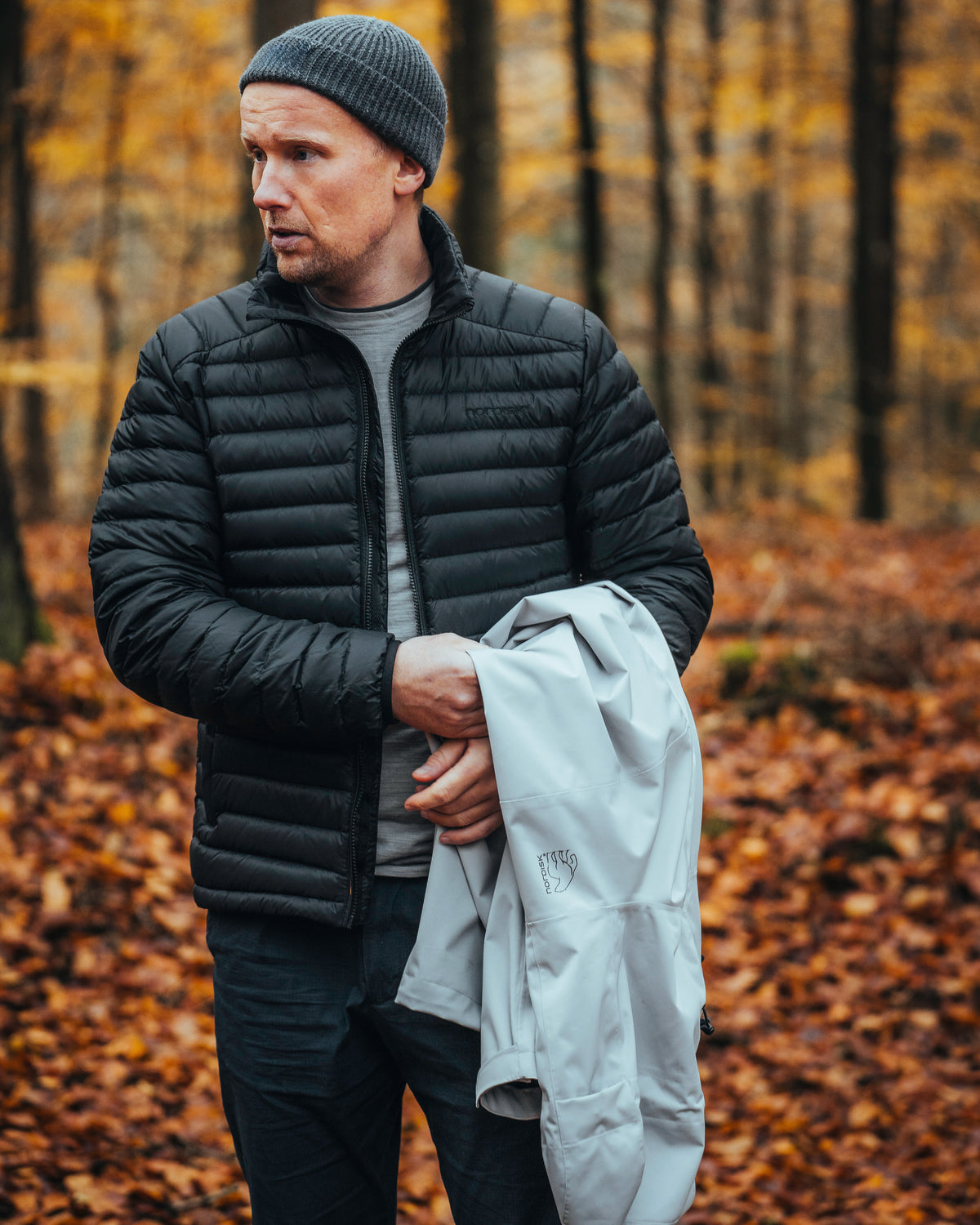 The outer shell, made of recycled and PFC-free materials, showcases a sophisticated honeycomb structure with 2-way stretch, providing both flexibility and a refined appearance. The breathable XD Tech membrane effectively shields you from rain and wind while adapting to your activity level. Inside, the newly designed down jacket features an innovative chamber construction that maximizes warmth and comfort without compromising the jacket’s sleek profile.