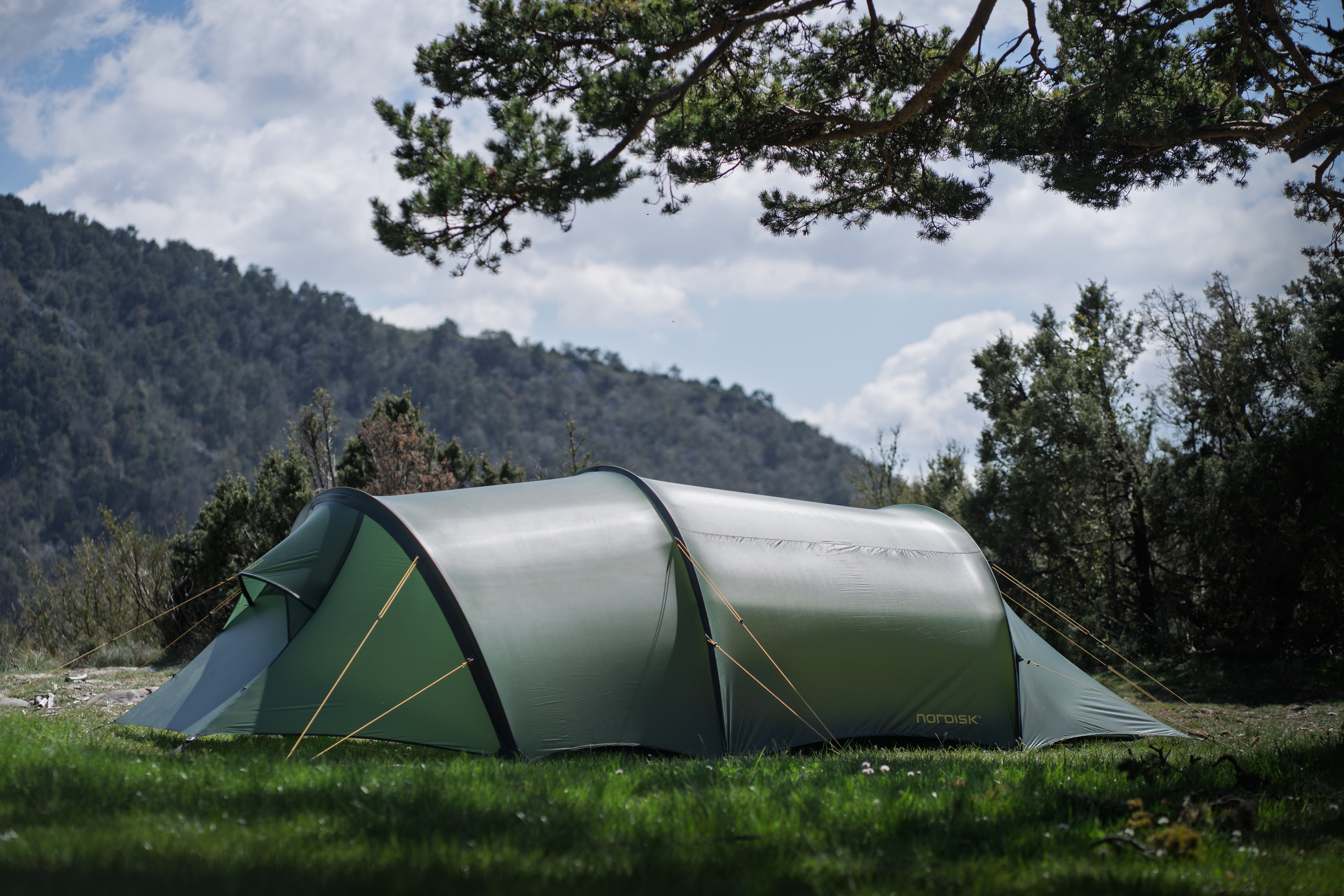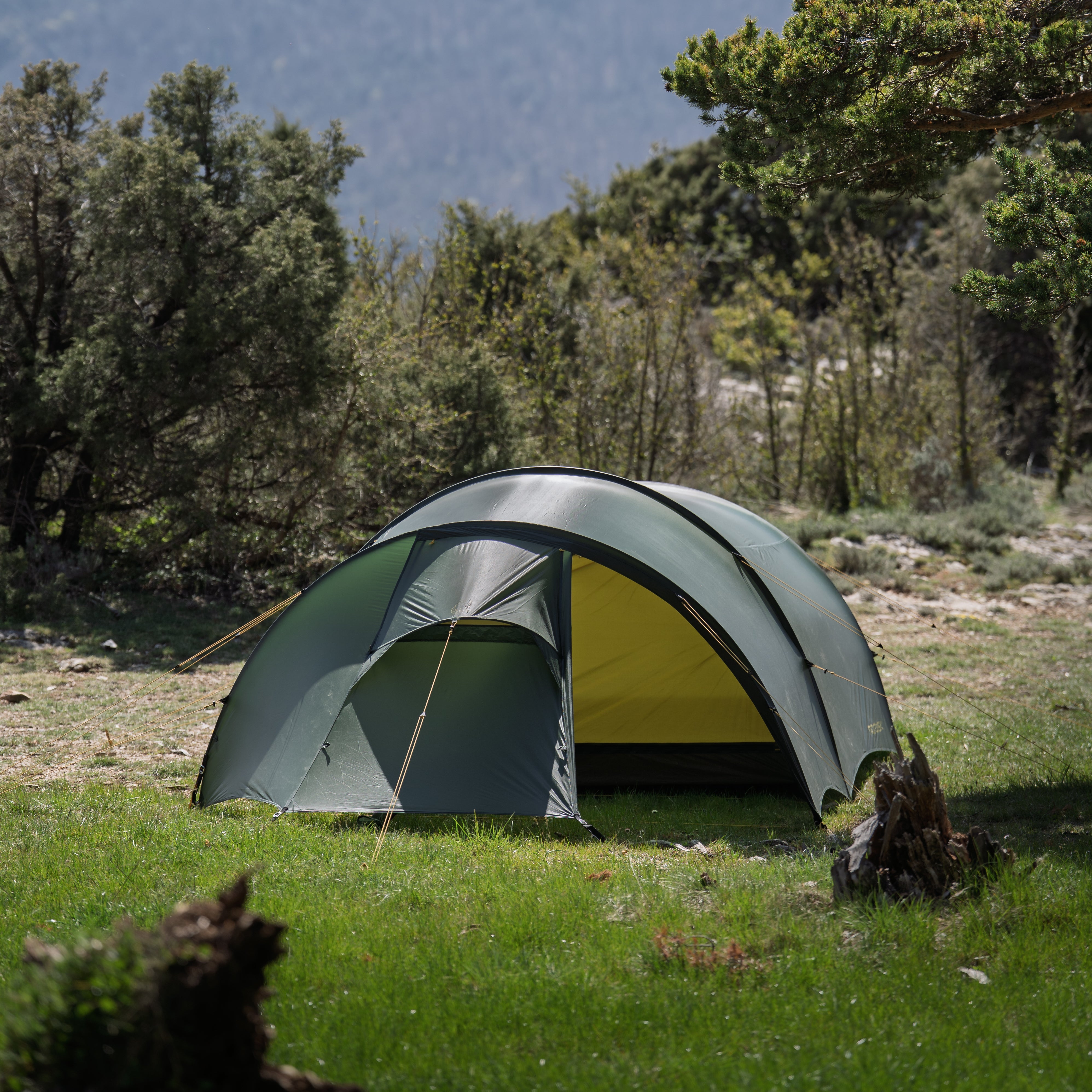 The Oppland 3 LW (2.0) is a highly versatile and spacious tent, weighing just 2080 grams. The inner width of 190 cm makes it one of the widest 3 person tents on the market with plenty of space for three, plus room for cooking and storage of gear in the large apsis. It is easy to pitch and has an aerodynamic tunnel construction providing excellent strength. The Oppland 3 LW (2.0) has a large vent at each end of the tent and with doors on both sides, it offers a variety of possibilities for optimal ventilation and a great indoor climate. It has concealed pole channels, DAC poles and Dyneema guy lines.