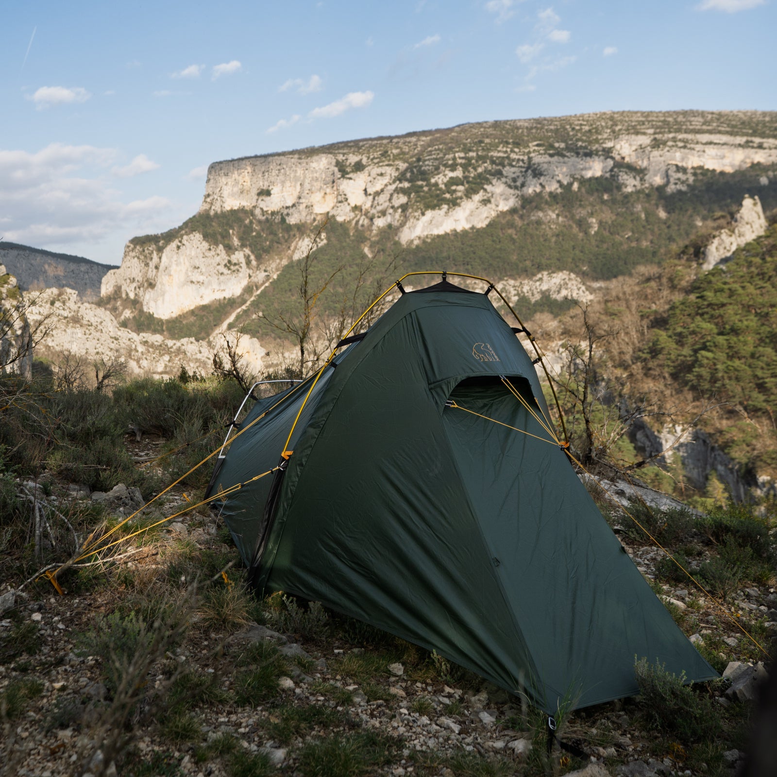 The Svalbard 1 Sl (2.0) is light, functional, spacious, and our strongest 1 person tent. The pole construction allows plenty of space for storage inside the sleeping compartment with additional room for footwear and cooking in the small apsis. With its four pole socks and pole hooks, setting up is swift and straightforward, thanks to its intuitive design and lightweight, durable poles that align quickly into place. The back and front can be rolled away making ventilation very effective in good weather. Svalbard 1 SI (2.0) is great for trekking as it packs small but performs big.